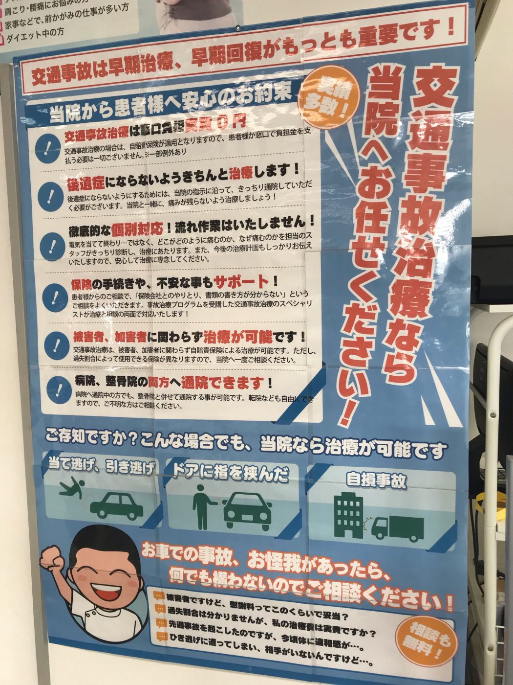 ・交通事故施術・・・0円(交通事故との因果関係等が認められる場合のもの)